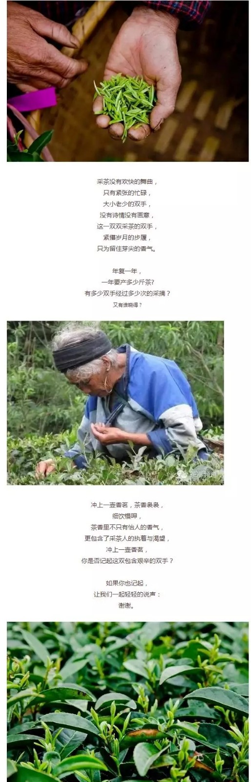 種茶人,采茶人,制茶人,飲茶人,他們的命運(yùn)因?yàn)橐槐柽B接在一起。真正的茶人,深知這茶香的源頭,其實(shí)不在雙手,而在心間。
